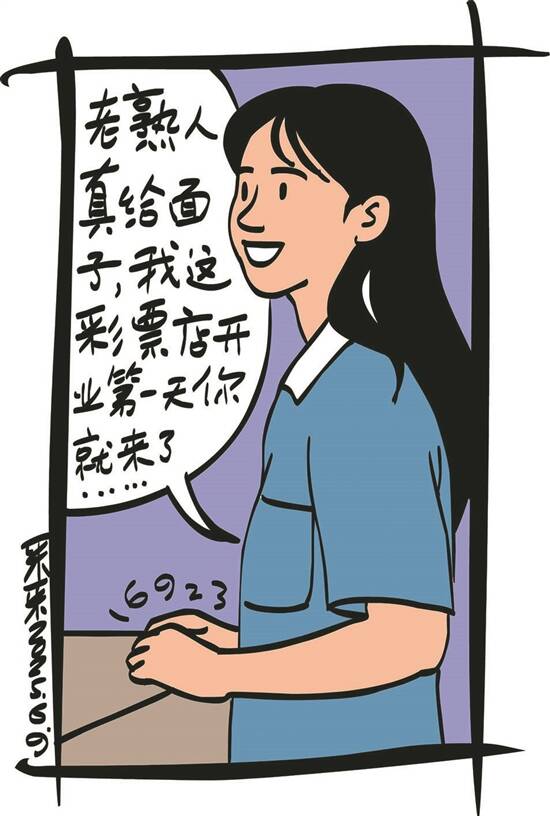 插图:采采 王斌和朋友走进一家熟悉的服装店,店主欧燕打量着他褪色的夹克和厚重的牛仔裤:“你朋友穿得光鲜,你却连件应季衣服都不买?”王斌苦笑着说:“回家找找以前的衣服还能穿呢。” 半个月后,王斌刚出小区大门,看到街上的一家门面房门前两边放着花篮,进去一看,墙面上挂着崭新的彩票走势图,屋内桌前坐满了选号的人。此时,王斌听见一声清亮的女声:“老熟人真给面子,我这彩票店开业第一天你就来了!”王斌循声一看,见欧燕笑盈盈地站在柜台前。 “你不是开服装店吗?” “原来店铺合同到期了,而且生意也一般。”欧燕边打彩票边说,“转行开彩票店倒能常见着你,机选5注吗?” 王斌点了点头,并掏出现金说:“快别提了,家里人总催促脱单,让我提前着手准备,在新开盘的高档小区买套房子,还得配辆车,压力也蛮大的。”彩票打出后,欧燕递给王斌后轻声说:“其实我早认出你,你是小时候总护着我的斌哥。” (杨进峰)