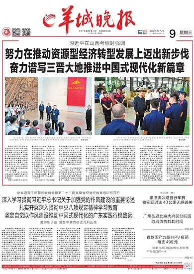 中共广东省委主管、主办 羊城晚报社出版 1957年10月1日创刊 36℃ 26℃ 2025年7月9日 乙巳年六月十五 星期三 责编/袁