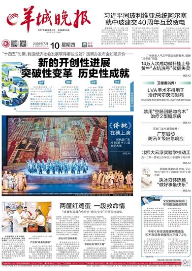 中共广东省委主管、主办 羊城晚报社出版 1957年10月1日创刊 2025年7月10日 乙巳年六月十六 星期四 25℃-31℃ 责编/袁婧 美编/刘苗 校对/桂晴