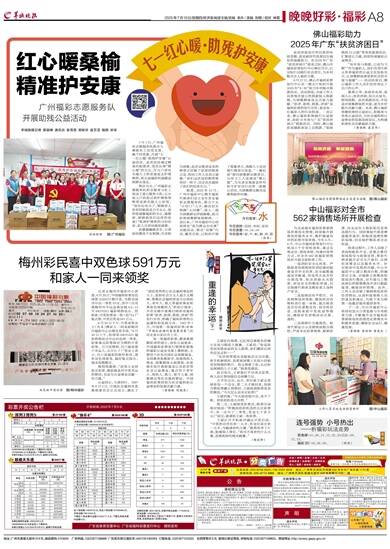 羊城晚报记者 黄颖琳 通讯员 袁雪雯 郭新庆 盘芷滢 插图 采采 7月1日,广州福彩志愿服务队联合九佛街社工站党支部、枫下村党委,开展“七一红心暖·助残护安康”公益活动。此