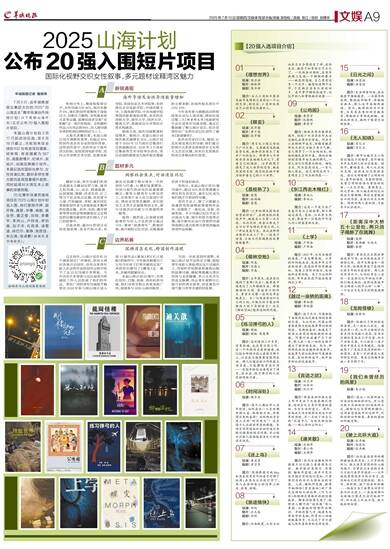 羊城晚报记者 詹锡伟 7月9日,由羊城晚报报业集团主办的2025“向山海走去”青年导演创作扶持计划(以下简称山海计划)正式公布20强入围短片项目。 本届山海计划自3月17日起启