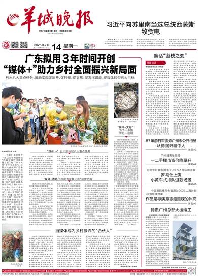 中共广东省委主管、主办 羊城晚报社出版 1957年10月1日创刊 2025年7月14日 乙巳年六月二十 星期一 34℃ 26℃ 责编/袁婧 美编/刘栩
