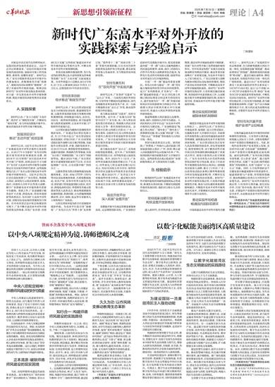 □陈雷刚 开放是中国式现代化的鲜明标识,是我国经济发展的重要法宝。习近平总书记明确要求,“总结用好我国开放发展的成功经验,加强对开放工作的战略性、系统性、前瞻性谋划”。新时代以来,广东充