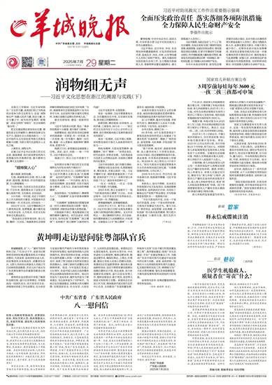 中共广东省委主管、主办 羊城晚报社出版 1957年10月1日创刊 乙巳年闰六月初五 2025年7月29日 星期二 责编/冷爽 美编/李金