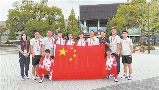 2025年世界跳绳锦标赛男子团体全能冠军与教练组的合影 花都跳绳队供图 |