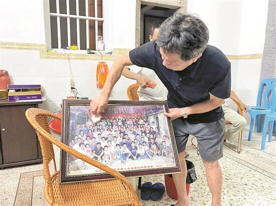 吴秋钟家人在宗族合照中指出吴秋钟,轻轻擦拭着 羊城晚报记者 赵映光 蚁璐雅 摄 |