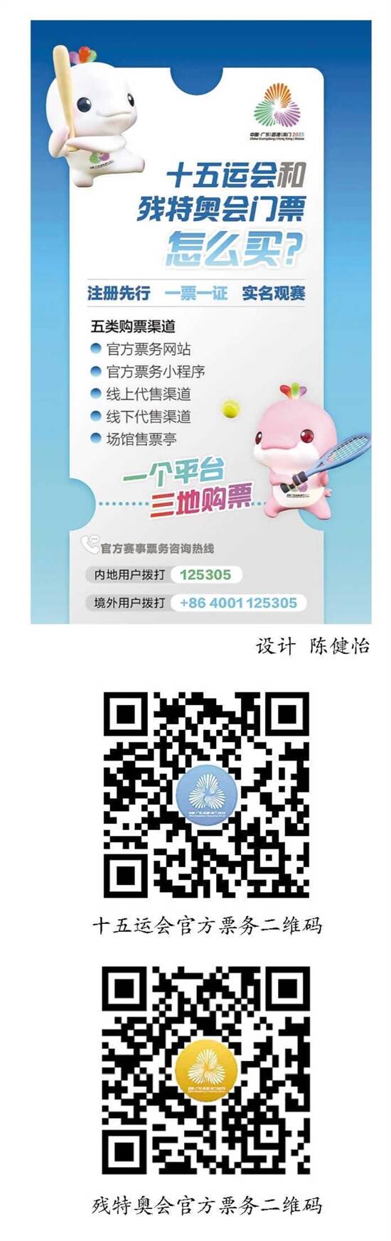 一、赛事门票在哪里购买? 答:可通过以下官方渠道购买: 1.官方网站 十五运会:https://ticket.baygames.cn 残特奥会:https://ticket.baygamespara.cn 2.微信小程序 搜索“十五运会官方票务”或“2025残特奥会官方票务”。 3.官方票务小程序 十五运会官方票务 2025残特奥会官方票务 官方赛事票务二维码(移动端) 十五运会官方票务 残特奥会官方票务 二、粤港澳三地的赛事门票都能在官网上买到吗? 答:十五运会和残特奥会实行“一个平台、三地购票”的购票政策,观众可通过官方网站和微信小程序选购粤港澳三地所有赛事门票。 三、想了解更多购票相关信息有什么咨询渠道? 答:组委会设立了票务呼叫中心,为公众提供赛事信息查询等咨询服务,官方赛事票务咨询热线: 内地用户拨打:125305 境外用户拨打:+86 4001 125305 (人工服务:8:00-22:00|自助语音:24小时) 也可通过发送邮件咨询: 官方客服邮箱:services@quanyun2025.com 四、为什么官方网站和小程序上线后还不能购买赛事门票? 答:为确保购票公平,十五运会和残特奥会门票销售全面实行“一票一证、实名购票、分批上线”的规则。 自8月13日起,公众可在十五运会官方票务网站、官方票务小程序完成实名注册,浏览赛事日程、场馆导览和票务政策等信息。用户完成实名注册后才可选择购票,同一手机号或邮箱仅能注册一个账号。 根据组委会安排,8月28日起将开售第一批足球、篮球、体操、射击等17个项目门票。 之后将根据竞赛日程安排,陆续分批安排比赛项目上线销售。 五、如何完成注册? 答:(一)选择登录,用户登录方式:支持【邮箱/手机号+密码/验证码】方式登录,其中手机号码仅支持中国内地、中国香港、中国澳门、中国台湾地区的手机号。 (二)注册流程 1.选择国家/地区(中国内地、中国香港、中国澳门、中国台湾)。 2.填写并验证联系方式。若选择中国内地地区手机号,需手机验证才能注册成功;若选择中国香港、中国澳门、中国台湾地区手机号,则需手机号和邮箱双重验证才能注册成功。 3.填写密码、实名信息及紧急联系人。密码规则:需最少8个字符,包括数字、符号、英文字母中的两种。 4.个人实名信息包括:姓名;证件类型(中华人民共和国居民身份证、港澳居民来往内地通行证、台湾居民来往大陆通行证、护照、香港身份证、澳门身份证、往来港澳通行证、港澳台居民居住证);证件号码。 六、一次可以买多少张门票? 答:为了兼顾观赛公平与购票需求,热门项目每场次每个订单限购3张,普通项目每场次每个订单限购6张。购票人必须提交真实身份信息,同一个有效证件仅可购买同一场次1张体育比赛门票。 七、线上购票支持哪些付款方式?使用港币或澳门元可以购买门票吗? 答:线上官方票务网站的门票票价统一以人民币定价,支持支付宝、微信、银联卡、数字人民币和Visa/Mastercard外卡等方式支付票款。微信官方票务小程序的门票票价统一以人民币定价,支持使用微信支付购票。在广东、香港、澳门赛区线下购买赛事门票时,可使用当地货币支付。 八、如何获取比赛时间、地点等信息? 答:您可以登录十五运会官方赛事票务网站或十五运会官方赛事票务小程序,按赛区、城市、项目、时间等维度查询售票情况。 九、线上购票后怎么取票? 答:您可以选择电子票或快递邮寄纸质票。 十、原本选择了电子门票,可以改为快递邮寄吗? 答:不支持取票方式更改。如您需要纸质门票,您可到所购买门票的赛区场馆售票亭(如有,具体场馆售票亭点及服务时间会在十五运会官方赛事票务网站和官方赛事票务小程序公布并不定期更新)换取。如您购买的电子门票为广东赛区体育比赛项目,您还可到线下代售网点(如有,具体代售网点及服务时间会在十五运会官方赛事票务网站和官方赛事票务小程序公布并不定期更新)换取纸质门票。 十一、我从十五运会官方票务网站购买了纸质门票,选择快递邮寄,怎么查询邮寄情况? 答:您可以通过十五运会官方赛事票务网站或官方赛事票务小程序订单页或快递单号查询。 十二、儿童购票有何规定? 答:满两周岁(含)以上儿童须购买门票,且由监护人陪同入场;两周岁以下儿童可凭户口簿等有效证件免票观赛。一名监护人仅可携带一名免票儿童共享坐席。 十三、开闭幕式门票如何购买? 答:开闭幕式票务方案确定后将另行公布。