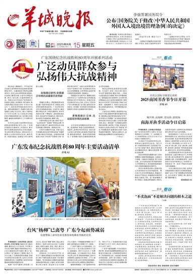 中共广东省委主管、主办 羊城晚报社出版 1957年10月1日创刊 31℃ 24℃ 2025年8月15日 乙巳年闰六月廿二 星期