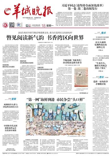 中共广东省委主管、主办 羊城晚报社出版 1957年10月1日创刊 2025年8月18日 乙巳年闰六月廿五 星期一 责编/徐雪亮