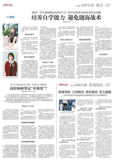 羊城晚报记者 蒋隽 暑假期间,不少初三毕业生开始学习高一的课程。如何有效做好初高衔接?多所广州名校学科组长给出攻略。 强化自学能力 华南师范大学