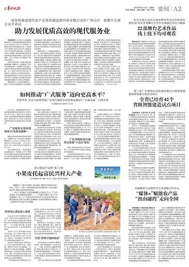 羊城晚报讯 记者吴奕镇,通讯员朱景优、邓燕琴报道:为加快落实广东省关于“媒体+”赋能“百千万工程”农产品市场体系建设行动的工作要求,探索“媒体+”赋能“百千万工程”新做法,8月22日,羊城晚报报业