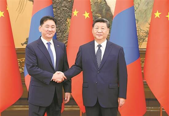 习近平会见蒙古国总统呼日勒苏赫 新华社发 |