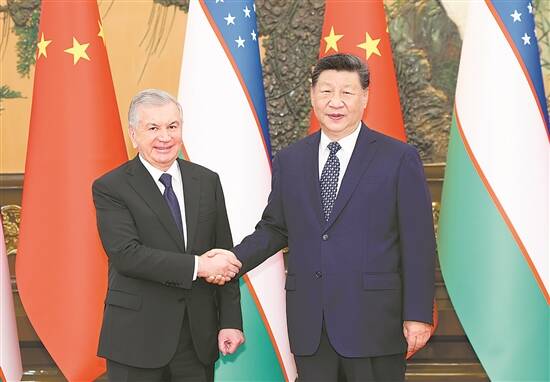 习近平会见乌兹别克斯坦总统米尔济约耶夫 新华社发 |
