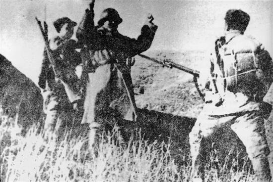 我军战士在第三次长沙会战结束时捕捉残敌 |