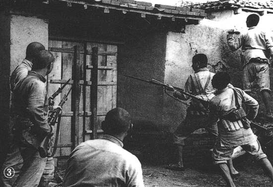 1938年,中国守军在台儿庄外围阻击进犯的日军 |