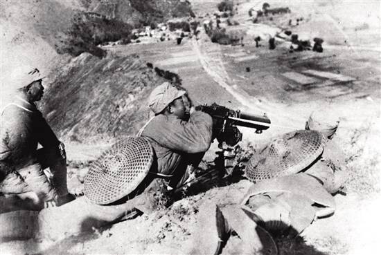 平型关战斗中,八路军第115师某部的机枪阵地 |