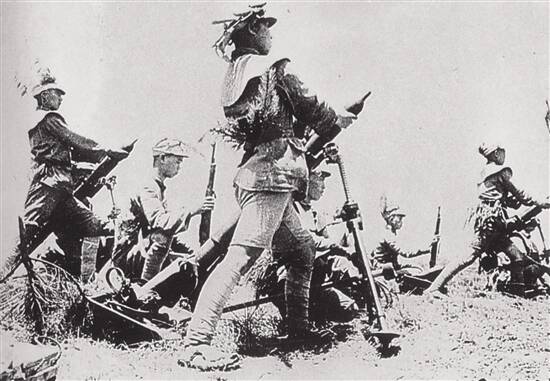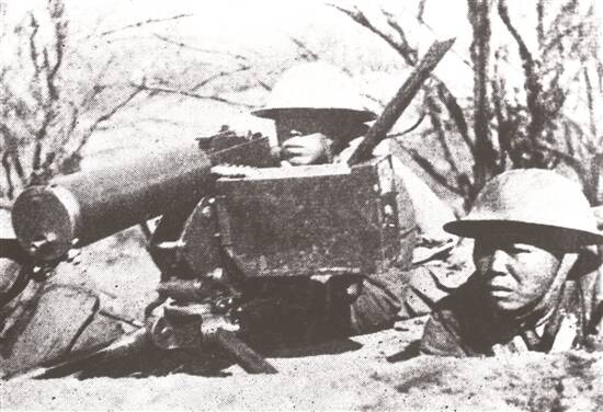 武汉保卫战中,我军向敌人发射迫击炮 |