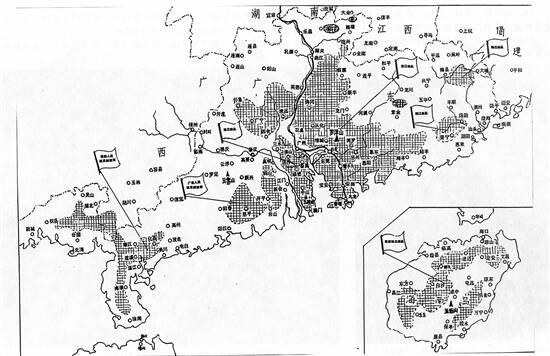 1945年广东人民抗日根据地及游击队活动地域示意图 资料图片 |