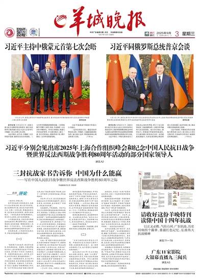 中共广东省委主管、主办 羊城晚报社出版 1957年10月1日创刊 35℃ 25℃ 2025年9月3日 乙巳年七月十二 星期三