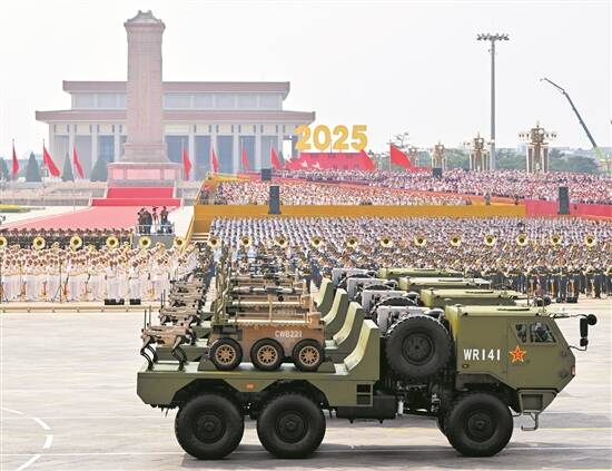 加受油机梯队:以预加油状态接受检阅 9月3日上午,运油-20A与轰-6N、歼-16、歼-20飞机组成加受油机梯队,以预加油状态飞过天安门广场上空,接受祖国和人民检阅。 运油-20A是我国自主研发的新一代空中加油装备,主要担负为航空兵部队作战行动、日常训练和演习演练提供空中加油保障的任务,并可担负与运-20A相同的各类空中投送任务。 受阅的运油-20A来自空军航空兵某部。该部是全军最早组建的运输机部队,也是首批列装运油-20A的部队。 教练机梯队:压轴出场 接受检阅 9月3日上午,由5架教-10飞机、5架歼-10S飞机、7架歼-10表演机组成的教练机梯队压轴出场,接受祖国和人民检阅。 受阅的教-10飞机全部来自空军某飞行学院,该学院是空军同类院校中首家列装教-10的单位。 作为教练机亮相阅兵场的歼-10S飞机,是我国自行研制的高性能、多用途第三代战机,在具备火力打击能力的同时,可支持飞行员进行改装训练,突出教练功能。 空军八一飞行表演队驾驶歼-10表演机,以超密集编队出场。7架战机在空中划出14道彩烟,寓意着中华民族14年可歌可泣的抗战历程,象征着14亿多中国人民奔向强国复兴的绚丽前景。 后勤保障方队:向战为战 融合保障 向战为战,融合保障。后勤保障方队3日上午经过天安门广场,接受祖国和人民检阅。 受阅装备为野战急救车、野战帐篷医院系统、运加油车、基地化热食快餐保障系统,是联勤保障部队新一代保障装备,兼具机械化、信息化、智能化等特点,功能齐备、方便快捷,能很好地满足现代战争条件下的战略战役支援保障需求,丰富完善了我军现代后勤保障体系,大幅提升联合保障能力。 后勤保障方队由联勤保障部队抽组。 陆上无人作战方队:陆上有人无人协同作战实现新突破 跨越险阻,无往不至。陆上无人作战方队3日上午通过天安门广场,接受祖国和人民检阅。 受阅装备为侦打突击、扫雷排爆、班组支援等无人战车。侦打突击无人车是一款可遂行多样化军事任务的新型无人装备,是现代无人装备融入现有作战体系的重要组成部分;扫雷排爆无人车遂行扫雷排爆、通路开辟等任务,能够融入现有作战体系;班组支援无人车与步兵共同构成班组作战单元,遂行弹药给养、物资器材伴随保障等任务,必要时执行伤员输送等任务。 这个方队由陆军第71集团军为主抽组。 海上无人作战方队:创新海战样式的“奇兵利器” 自主巡弋,出击深蓝。海上无人作战方队3日上午通过天安门广场,接受祖国和人民检阅。 这个方队受阅的新型无人潜航器、无人艇、无人布雷系统,具备隐蔽布放封锁、自主探测识别、集群组网攻击等作战能力,是海上作战的“奇兵利器”。 海上无人作战方队由海军某部牵头组建。 核导弹第一方队:维护国家主权、捍卫民族尊严的战略“王牌” 国之重器,压舱基石。核导弹第一方队3日上午震撼登场,接受祖国和人民检阅。 受阅的“惊雷-1”空基远程导弹、“巨浪-3”潜射洲际导弹、“东风-61”陆基洲际导弹、“东风-31”新型陆基洲际导弹,首次集中展示我军陆、海、空基“三位一体”战略核力量,是维护国家主权、捍卫民族尊严的战略“王牌”。 核导弹第一方队由空军某基地、海军某基地、火箭军某基地某旅等混合编组。 舰载机梯队:四型舰载机同时公开亮相 由歼-15DH、歼-15DT、歼-35和歼-15T四型战机组成的舰载机梯队,3日上午接受检阅。 我国自主研发的重型舰载战斗机歼-15T,适配电磁弹射系统,具备弹滑一体能力。歼-15DH飞机是我国自主研发的舰载电子战飞机。歼-15DT飞机是我国自主研发的弹滑兼容型舰载电子战飞机。作为我国自主研制的新型隐身舰载战斗机,歼-35飞机是海军实现由近海防御型向远海防卫型转变的标志性装备。 舰载机梯队由海军航空兵某旅牵头组建。这个旅是中国海军组建的第一支舰载航空兵旅。 巡航导弹方队:多域慑战制胜的“点穴”利器 长缨在手,敢缚苍龙。巡航导弹方队3日上午通过天安门广场,接受祖国和人民检阅。 方队采取海军、空军、火箭军联合编组模式,受阅的长剑-20A、鹰击-18C、长剑-1000导弹,是实施远程精确打击、多域慑战制胜的“点穴”利器。 长剑-20A导弹是空军新型空射巡航导弹,鹰击-18C导弹是海军新型对陆攻击巡航导弹,长剑-1000导弹是火箭军新型高超声速巡航导弹。 方队以空军航空兵某师、海军某基地、火箭军某基地为主体组建。 装备保障方队:武器装备的“铁甲医院” 抢救抢修,分秒必争。装备保障方队3日上午接受祖国和人民检阅。 受阅的新型抢修车、轮式装备抢救抢修车、拆装修理车、机电检测维修车,被称为武器装备的“铁甲医院”,是我军新一代抢救抢修装备,具有全天候全地域装备保障能力。 新型抢修车,主要用于对我军各型号轮式车辆、轻武器进行检测维修;拆装修理车,主要用于在野战条件下完成大部件的吊装作业、换件修理;机电检测维修车,是野战条件下功能完备的综合维修作业单元;轮式装备抢救抢修车,集拖救、拖牵、起吊、应急修理等功能于一体,主要用于大型特种轮式装备的抢救抢修。 这个方队由北部战区陆军某合成旅独立抽组。 空中无人作战方队:创新未来空战新样式 人工智能,空天争锋。空中无人作战方队3日上午通过天安门广场,接受祖国和人民检阅。 方队新型察打一体无人机、无人僚机、舰载无人直升机等装备,可隐蔽出击、广