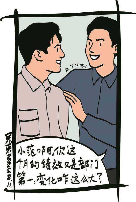 插图:采采 “小范啊,这月绩效你又是部门第一,变化咋这么大?”经理拍着他肩膀赞许道。办公室新来的实习生笑着对经理说,范哥手机壁纸是“每日三省”,分别是“担当否,专注否,守信否”。 最近,彩票站的老胡发现了个规律,从前玩心很重的小范,如今总在黄昏时分拖着疲惫的身子踏进彩票站,工服上沾着星星点点的油渍。“还是来两注?” 老胡推了推老花镜问。 小范从上衣兜里掏出个精致的笔记本,说道:“今天用选号吧。”只见纸页上用又大又潦草的字写着:6月8日帮陈工顶夜班,7月12日暴雨抢修电路……老胡眯眼瞥见这些记录,突然笑出声:“你小子是要用这些日子串出幸运数字?” 七夕那晚,小范在设备间抢修电路。手机提示音突然响起,监控室的小苏发来一张照片,照片上穿着工装的小范正仰头调试仪表。紧接着,小苏又发来一句话:“你这模样,可比游戏角色帅多了。”小范耳根发烫,想起半月前的暴雨夜,这姑娘抱着维修工具陪他查了两小时线路故障的事,心里顿时有阵暖流涌过。 当婚礼请柬送到彩票站时,老胡高兴地对小范说:“人生贵在守正创新啊。” 大红喜帖里夹着一张旧彩票,日期正是小范背老太太去医院那天。彩票的空白处,有一行娟秀的小字:“人生头奖已兑现。” (朱延嵩)