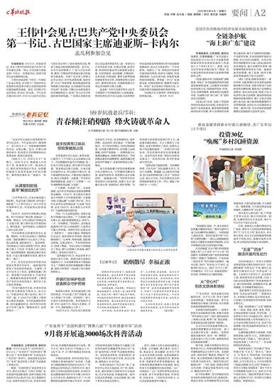 羊城晚报讯 9月5日,省委副书记、省长王伟中在深圳会见古巴共产党中央委员会第一书记、古巴国家主席迪亚斯-卡内尔。省委副书记、深圳市委书记孟凡利参加会见。 王伟中对迪亚斯-卡内尔一行到访广东