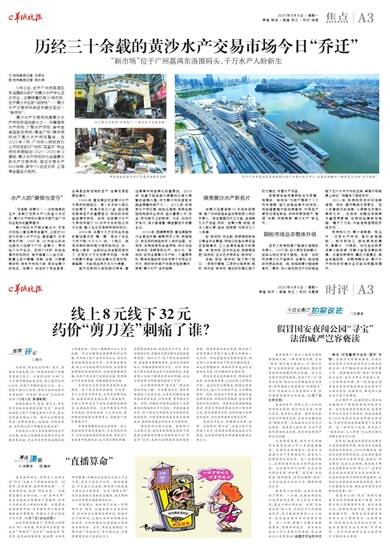 文/羊城晚报记者 马思泳 图/羊城晚报记者 陈秋明 9月8日,位于广州市荔湾区东洛围码头的广州黄沙水产中心正式开业。这意味着已有31年历史、位于黄沙片区的“旧市场”——黄沙水产