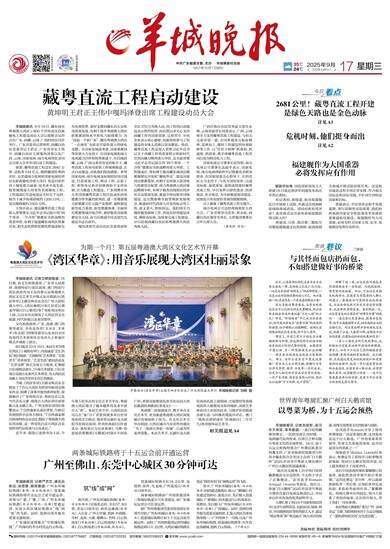 中共广东省委主管、主办 羊城晚报社出版 1957年10月1日创刊 35℃ 24℃ 2025年9月17日 乙巳年七月廿六 星期三