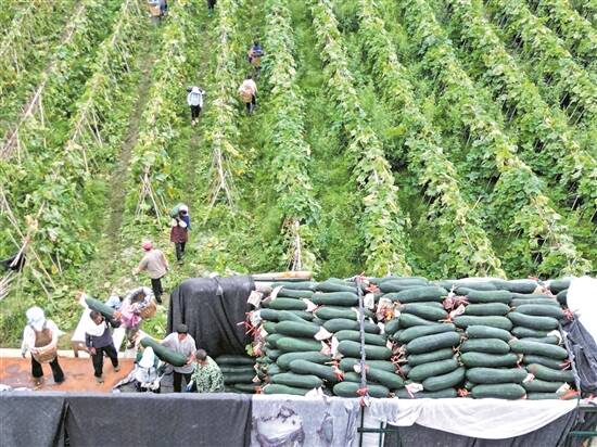 □邹春江 眼下,贵州省铜仁市印江土家族苗族自治县的万亩辣椒基地里,红艳艳的朝天椒挂满枝头,农户们弯腰采摘,麻利地将一筐筐朝天椒搬上货车。同一时刻,红茶生产线热气升腾,木黄镇的冬瓜地里收割的吆喝声此起彼伏。 地处世界自然遗产地和国家级自然保护区梵净山西麓的印江,得天独厚的自然条件孕育了醇香四溢的茶叶、菌菇、蔬菜等品类繁多、品质优良的农特产品。9月27日,这些带着露珠的“印江红”,将走入东莞集中展示推介,让深藏于武陵山区的绿色、有机、健康的优质农产品,跨越山水阻隔,走进千家万户。 “花果红”茶产品风味独特 素有“中国名茶之乡”美誉的印江,过去以“一片绿叶”带领群众脱贫致富,如今,面对市场多元化需求,印江的茶产业,正经历一场从“绿”主导向“红绿并举”的产业提升。 早期,基础款的红茶香气不足、缺乏特色。是改良品种还是革新工艺?推动红茶产业提质增效,成为当地面临的课题。 成立于2015年的贵州贵蕊农业发展有限公司,是一家集种植、研发、加工、销售、茶文化传播及农产品销售为一体的省级农业产业化龙头企业,目前省内有优良品种黔茶一号茶园基地500多亩,合作茶园3000多亩,生产地标产品梵净山翠峰茶(梵净山茶)、老白茶、红茶等。 据介绍,传统红茶工艺没有摇青环节,在制茶技术升级上,贵蕊公司采用了乌龙茶的摇青工艺,通过适当摇青,让茶叶芳香物质充分释放,使其具有独特的花果香。这一改进,形成了印江“花果红”红茶独有的风味标识,并连续多年获各类赛事金奖,成为新工艺红茶的风向标。 在传承基础上,印江通过工艺创新,构建起系统化、智能化的“花果红”加工技术体系。科技赋能成就了其“果香馥郁、甘甜鲜爽”的独特品质。 今年8月,贵州山山谷农业有限公司推出“花果红酵素饮料”,以梵净山绿茶为基,发酵成时尚健康饮品,口感酸甜,富含多种微量元素,从“产得好”转向“卖得巧”,精准契合都市青年追求健康、便捷与时尚的饮品趋势,成为“黔货出山”对接湾区市场的又一创新尝试。 随着东西部协作深入开展,印江茶产业发展的巨大潜力逐步显现。2024年以来,东莞市寮步组团支持印江新建5条茶叶生产线,覆盖上万亩茶园,辐射带动超5000人就业。山山谷公司负责人向瑜介绍:“2024年新投入的碾茶生产线每小时茶青处理量达500公斤,产能是之前的2倍,带动上游600亩茶园农户稳定增收。” 红辣椒风味浓郁市场热销 在贵州梵净红食品有限公司厂区内,鲜红的辣椒堆成小山,7条25吨级全自动烘干生产线正24小时不停运转,热浪裹挟椒香,一幅红火的丰收画卷正徐徐展开。 辣椒是印江促进群众增收的重要产业。近年来,东莞寮步组团立足印江已有的辣椒产业发展基础,引进贵州梵净红食品有限公司,共投入东西部协作资金1000余万元,协作共建“一县一企”农村劳动力稳岗就业基地,推进辣椒烘干、泡椒等多条辣椒生产线扩容提量,发展“梵净红”订单辣椒超5万亩及精深加工项目。 “鲜辣椒通过精深加工成泡椒、糟辣椒后,产品附加值至少提高30%。”贵州梵净红食品有限公司总经理廖文刚说,为让辣椒“身价倍增”,公司还延伸出辣椒面、油辣椒、辣椒段等深加工产品。 在沙子坡镇天星村,互立农业基地的80多亩“椒霸天下”朝天椒品质出众,硬度高、耐储运、风味浓,成为供港蔬菜的“尖货”。基地负责人朱悟颉介绍,这种辣椒硬度高、耐储运、货架期长,且风味浓郁,是南方市场的热销品种。 今年,该基地辣椒亩产预计可达2500公斤,收购价稳定在每公斤10至14元,经济效益显著。自8月以来,已向大湾区发运数车,每车均载5000多公斤。有了稳定订单和畅通渠道,该基地年产值有望突破300万元。 从零散种植到“订单+精深加工”全链模式,印江辣椒产业在东西部协作资金的持续注入下,逐步建成现代化产业体系,带动农户1.2万余户共3万余人增收。一颗颗红辣椒,正成为乡村振兴的“火红”印记。 优质蔬菜远销海外市场红火 木黄镇,是印江县红色文化和木黄窖酒的诞生地,如今也正成为粤港澳大湾区重要的“菜篮子”供应基地。 2022年,贵州黔福兴农业技术开发有限公司(以下简称“黔福兴”)正式落户木黄镇新民坝区。公司依托东部市场需求导向,在荣光、新光、乌巢三个村集中流转土地,规模化种植黑皮冬瓜。 2024年,公司冬瓜种植面积约500亩,恰逢十年一遇的好行情,地头价攀至2.6元/公斤。吴锦堂介绍,采收高峰期,来自广东的采购商每天发出3至4挂车,每车装载33至35吨冬瓜,全部直供大湾区市场。 今年以来,公司调整种植结构,扩大面积600余亩加种优质南瓜。截至目前,已累计向大湾区发送十多车南瓜,每车载重约30吨。据介绍,所有南瓜均严格执行“单果2公斤以上、果形饱满”的标准,品质备受市场认可。 与此同时,依托优良生态,广东马冈鹅在印江实现规模化养殖。“印江山清水秀,空气好、水质优、森林覆盖率高,青草丰富,所以养出来的鹅品质会好很多。”鹏一烧鹅公司负责人冉茂鹏说,自己养殖、屠宰后的鹅一部分供应本地市场,满足当地消费者的需求,而大部分则直接供应给大湾区市场,做成受欢迎的烧鹅美食。 产业发展的同时,就业带动效应显著。“现在我们在印江的基地有几十人务工。开展了‘农户代养’模式,将拉动更多乡镇一起来养广东鹅。”9月17日,贵州省鹏一食品有限公司