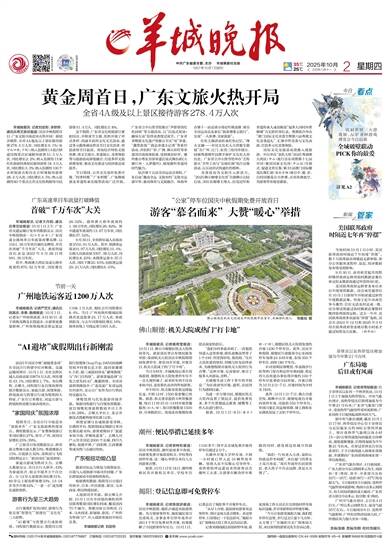 中共广东省委主管、主办 羊城晚报社出版 1957年10月1日创刊 2025年10月2日 乙巳年八月十一 星期四 35℃ 25℃