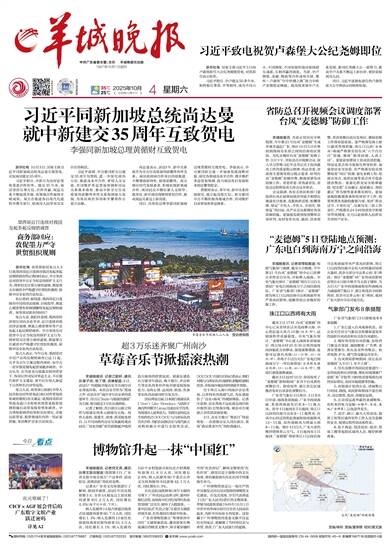 中共广东省委主管、主办 羊城晚报社出版 1957年10月1日创刊 35℃ 25℃ 2025年10月4日 乙巳年八月十三 星期六 责编/林圳