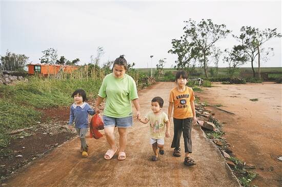 文/图 羊城晚报记者 钟振彬 李论 家,在台风“麦德姆”过后显得有些凌乱。瓦片散落一地,锅碗瓢盆东倒西歪,房顶被吹出了一个又一个洞。10月6日,中秋节的清晨,唐然和丈夫王玉平带着3个女儿从湛江市徐闻县愚公楼村村委会的安置点回到他们的租住处,他们没有时间沮丧,而是麻利地开始收拾。 “昨晚根本不敢住这儿,今天回来一看,瓦片被吹走了一部分。”唐然一边拾掇着碎瓦,一边说道。她来自贵州黔东南苗族村寨,与丈夫在这里做了11年的挑夫,专门挑香蕉、菠萝。 中秋,他们原本计划“买点孩子爱吃的菜,做顿好的”,但如今,一切从简。“房子虽然是房东的,可冰箱、锅碗都是自己攒钱买的,砸坏了,看了肯定难过。”唐然语气平静,“但生活还得继续。” 这不是他们经历的第一次台风。十几天前刚来过一场,但没造成什么影响。而这一次,台风在徐闻登陆,风力远超上次。村委会在前一天就通知转移,第二天一早派车来接。“他们特别好,下雨还从家里煮饭冒雨送来,还有应急床……”唐然说起这些,语气里是朴素的感激。 住老瓦房,几乎每次台风都要出去避风。“孩子跟着我们到处跑,心里总觉得对不起她们。”唐然轻声说。她希望能租个结实点的房子,不再因台风而颠沛流离。 作为“挑夫团队”中的一员,唐然并不认为挑夫是只有男人能做的活。“女的也可以挑,就是慢一点。”她笑着说。唐然和丈夫每天清晨5点半起床,送完孩子就去地里,挑香蕉、摘菠萝、砍甘蔗,工资日结,自由,但也辛苦。一个月两个人能挣一万多元,养3个孩子,“压力肯定大,但生了就要负责”。 在异乡,同村的老乡有五六十户,大多也做挑夫。大家以团队形式工作,彼此多是亲戚,互相照应。徐闻,早已成为他们心中的“第二故乡”。“出去一趟回来,看到‘徐闻’两个字,就觉得很亲切。”唐然说。 尽管生活不易,但这对夫妻始终带着一种明亮的乐观。唐然的抖音账号里,记录着一家人的日常,偶尔直播带货家乡农产品。她说自己从18岁就和丈夫在一起,走到现在,“爱情也有,亲情也有”。面对困难,她笑着说:“人生百味,笑着面对。” “我们没别人可依靠,只能靠自己。不努力,孩子怎么办?”她说。 中秋的夜幕渐渐落下,一家人把破败的院子简单收拾出来。原本想买灯笼应景,但台风过后无处可买。看着女儿们期待的眼神,丈夫王玉平灵机一动,翻出攒下的利是封、一段红绳和几双一次性筷子,坐在灯下,仔细地裁剪、捆扎。不一会儿,3个手工灯笼便做成了。女儿们惊喜地围上来,小手提着自己的“专属”灯笼,脸上露出笑容。 “节日的气氛还是要有的,”唐然看着孩子们,笑起来,“一家人在一起,吃顿团圆饭。” 台风可以吹垮砖瓦,却吹不灭那盏为团圆而亮的灯,无论是屋里的,还是孩子手中的。明月升起时,这个家,依然完整。