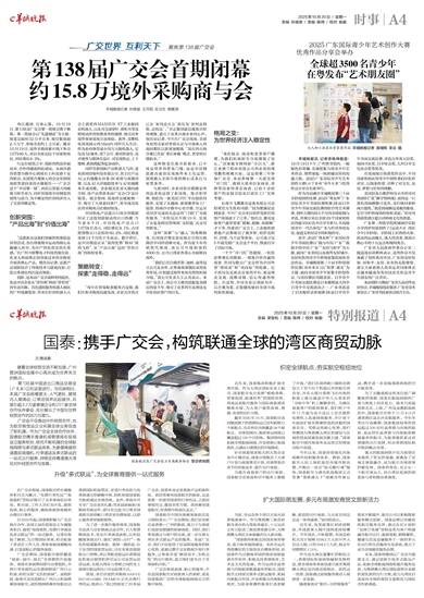 羊城晚报记者 孙绮曼 王丹阳 实习生 杨雅淇 珠江潮涌,万商云集。10月19日,第138届广交会第一期展会落下帷幕。第一期展会以“先进制造”为主题,展览总面积52万平方米,展位数量超2.