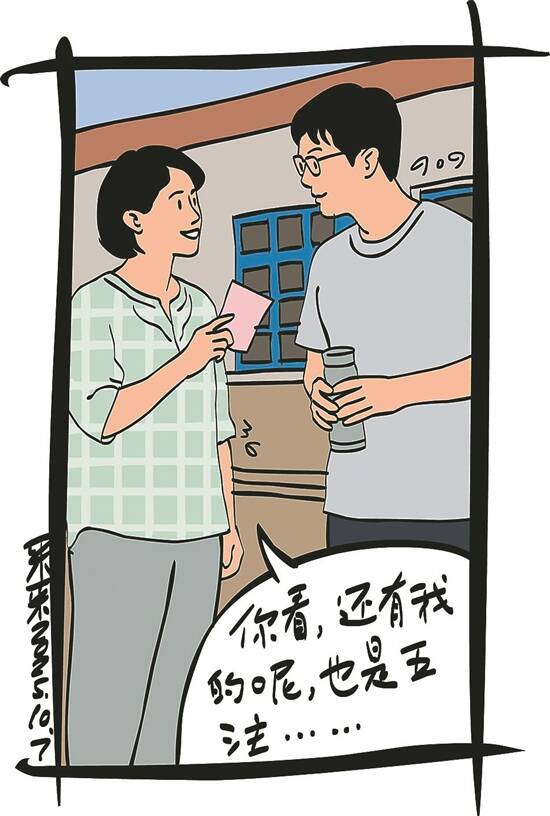插图:采采 胡蝶对这个阳光帅气的男孩很感兴趣,悄悄跟了上去。见胡大海进了街角那家彩票站,买了5注彩票,胡蝶也买了5注,她在大学里和室友玩过一段时间彩票。后来,她又跟进了超市,见胡大海除了买日用品,还特意选了不少图书和学生文具。 “他成家了吗?有孩子了吗?”胡大海像块磁铁似的,把胡蝶的好奇心全勾起来了。 沿着崎岖的山路,胡蝶费了不少劲,总算跟到了枫树湾村小学。胡大海一看见她就愣了:“你怎么来了?”胡蝶对他笑了笑,转身忙着同前来迎接的校长和两位老师打招呼。那两位老师凑在一起小声嘀咕:“啧啧,没想到胡大海还真带回来一位姑娘!” 胡蝶听见了也不恼,大大方方自报家门:“我是一名即将毕业的大学生,跟着胡大海老师来贵校考察,想留在这儿支教,大家欢迎不欢迎呀?”校长和两位老师一听,连忙鼓掌。胡大海站在一旁,愣怔怔地傻笑着,忽然想起自己那几张宝贝彩票,一摸口袋,装彩票的包居然没了。 “在这里呢,你把包落下了,我捡到了!”胡蝶挥动着手中的彩票,笑靥如花,“你看,还有我的呢,也是5注!” “借你的好运气,我也希望能中奖,盖三间大房,帮助一群活泼可爱的山里娃……”大伙儿被她逗乐了,胡大海也露出了淳朴的笑容,像秋日里沉甸甸的红高粱。 (刘琪瑞)