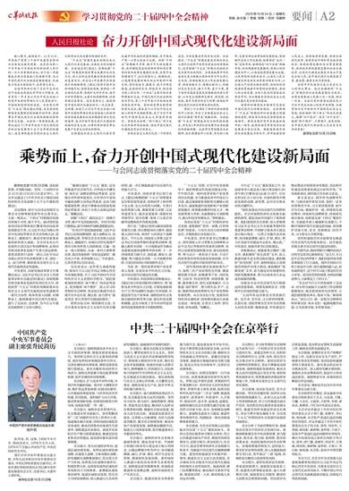 新华社北京10月23日电 谋划新蓝图,开创新局面。党的二十届四中全会10月20日至23日在北京举行。会议审议通过了《中共中央关于制定国民经济和社会发展第十五个五年规划的建议》。 会议期间,部分