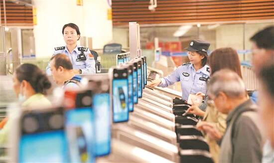 深圳市福田口岸,边检民警指导旅客“刷脸”通关 图/皇岗边检站 |