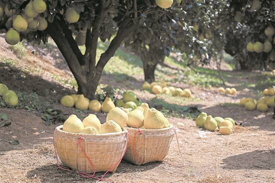 梅州市南福村金柚种植基地柚子迎来丰收 羊城晚报记者 黄城栋 摄 |
