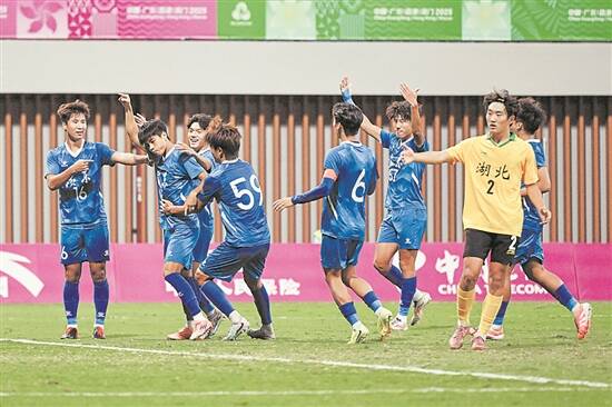 11月12日,十五运会U20男足的终极之战在深圳市青少年足球训练基地上演,经过120分钟的鏖战,广东队与湖北队战成1比1平,最终广东队在点球大战以3比5落败,以4比6的总比分遗憾摘银,未能实现无缘时隔38年重夺全运会冠军的心愿。铜牌争夺战,上海队在点球大战中以5比4战胜山东队,夺得季军。 广东队和湖北队在半决赛分别淘汰上海、山东两支夺冠热门,唯一进球均来自补时阶段的点球,且两队是目前唯一保持全胜且一球不失的球队,此番对垒可谓针尖对麦芒。能够同以4连胜杀出重围,攻守均衡、发挥稳定是两队共同的特质。广东队以深圳二零二八队为班底,湖北队以湖北青年星队为班底,虽然同为中乙球队,但由于各属南区、北区,且深圳二零二八队挺进争冠组,湖北青年星队处于保级A组,因此两队在上赛季的中乙联赛并未有过直接交锋的机会,本场可谓名副其实的遭遇战。 广东男足上一次在全运会夺冠还要追溯到1987年广州六运会,当时凭借麦超的头球以1比0战胜辽宁队。此后唯一一次挺进全运会决赛,为2009年山东全运会,当时广东队负于徐根宝领军的上海队屈居亚军。在半决赛淘汰上海报了当年的一箭之仇后,广东青年军期待在家门口重铸南粤足球辉煌。而湖北男足还从未染指全运冠军,此役也期待改写历史。 本场决赛,广东队主帅王宝山在首发名单调整一处,半决赛火线归队就攻入制胜点球的中场张志雄取代陈伟。上半场,拥有主场之利的广东队掌控球权,张志雄获得了更多的拿球机会,进攻核心钟文的突破是最大亮点。湖北队则在防线囤积6名防守球员,全线严防死守,进攻以后场长传反击为主。在对手布置的层层防线面前,广东队得势不得分,钟文、袁梓楠的远射全部高出。上半场,场面陷入僵局,两队以0比0进入更衣室。 换场再战,广东队明显加强攻势,前锋王梓洋的射门擦柱而出。第53分钟,场上出现争议判罚,广东队中场梅帅军利用角球混战头球攻入一球,但被裁判经视频回放判定越位在先、进球无效。第73分钟,广东进攻核心钟文突入禁区被放倒,裁判再度回看视频判定点球,钟文顶住压力罚入点球。眼看金牌近在咫尺,但广东队在常规时间的最后一分钟城门失守,湖北队远射攻入世界波,将比赛拖入加时。 加时赛两队未有建树,比赛进入残酷的点球大战,在你来我往的过程中,广东队中场王志远将点球罚失,最终东道主以总比分4比6遗憾落败。 羊城晚报记者 柴智