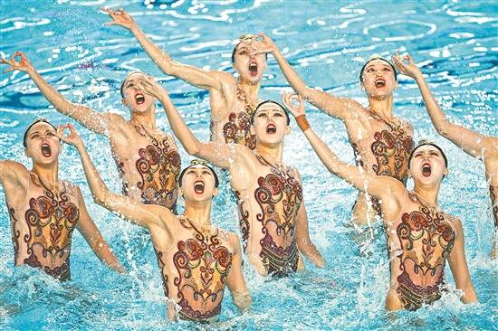 十五运会花样游泳比赛“集体技术自选”项目精彩瞬间 羊城晚报记者 钟振彬 宋金峪 摄 |