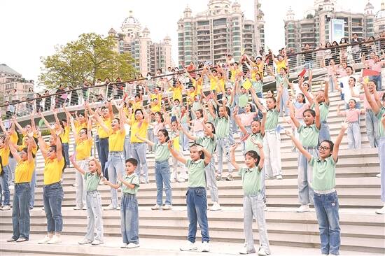 11月2日,230名老少市民在广州塔下齐唱会歌,为迎接十五运造势 羊城晚报记者 柳诚 摄 |