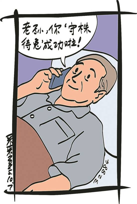 插图:采采 老高听了点点头:“你这说法在理。不过话说回来,这组号你守了十多年也没中过啥大奖,就没想过换换?” 老孙说:“不换,买彩票就是碰运气,今天要是换了,明天我守了十几年的号中大奖了,那得多后悔?”老高边笑边说:“真希望哪天啊,能有只‘兔子’,稳稳撞在你这棵‘树’上。” 老孙双手作揖说:“借你吉言,能中奖当然好了,更重要的是每天有这份盼头,能图个好心情,顺便做公益献爱心。” 日复一日,老孙每天都来买彩票,都还没开口,老高就替他打出了彩票。老孙守的那组号码,老高也熟记在心里了。 有次下大雨,老高看着窗外,正准备给老孙打个电话,说帮他先垫钱打张彩票。没曾想,老孙打着伞就跑了进来,喘了口气说:“习惯了,一天不来,总觉得心里空落落的,少了点啥。” 这天夜里,老孙刚躺下,枕边的手机突然响了。一接通,就听见老高在电话那头激动的声音:“老孙,你‘守株待兔’成功啦!” 接完电话,老孙赶紧点开手机查最新的开奖号码,果真和他守了12年的号码一模一样。 (汪小弟)