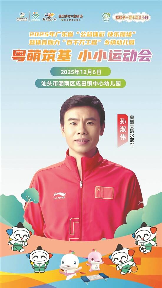 文/图 羊城晚报记者 胡彦 通讯员 粤体彩 插图/采采 近日,2025年广东省“公益体彩 快乐操场”暨体育助力“百千万工程”乡镇幼儿园“粤萌筑基 小小运动会”在清远市阳山县黄坌镇中心幼儿园启动。本次活动在茂名化州市杨梅镇中心幼儿园、汕头潮南区成田镇中心幼儿园同步设立分会场,形成一场跨越粤东、粤西、粤北的爱心联动。这场联动活动的举行,标志着“粤萌筑基·乡镇幼儿体育阳光计划”的全面展开,旨在将体育的阳光和快乐,播撒到更多乡镇孩子的心田。 奥运冠军现场助阵“小型全运会” 本次活动由广东省体育局、广东省教育厅、广东省妇女联合会共同指导,广东省体育总会主办,广东省青少年体育联合会承办,得到了广东省体育彩票中心的大力支持,旨在深入贯彻国家乡村振兴发展策略,落实广东“百千万工程”工作部署,通过资源整合与精准帮扶,缩小城乡幼儿体育发展差距,促进提升幼儿体质健康水平。 今年的活动共设6场,于12月6日、12月13日两个周六进行,每天在粤东、粤西、粤北各举办1场,主会场设在广东省体育局定点帮扶地阳山县。 孙淑伟、罗玉通、张雁全等广东奥运冠军亲临现场,与小朋友们亲切互动,为孩子们精彩的幼儿体育特色表演喝彩,并一同参与到“小小运动会”中,以“超人技艺”点亮萌娃们的体育热情。这场运动会不仅是一次快乐的趣味体验,更成为奥林匹克精神在孩子们心中萌芽的生动课堂。 现场活动内容丰富,除了奥运冠军分享、幼儿体育特色表演,更设置了五大区域、共18项游戏,堪称“小型全运会”。孩子们可挑战足球、篮球、排球、乒乓球、跳绳等传统项目,也可体验跑酷、飞盘、蹦床等新兴运动,还能参与投壶、射箭等体育游戏。活动还特别设置亲子协作区,邀请家长与孩子共同完成障碍赛、人力小推车、两人三足、袋鼠跳、快乐匹克球等项目,并设有公益体质监测,全面关注幼儿健康成长。 品牌公益活动惠及数百万名学生 “公益体彩 快乐操场”是国家体育总局体育彩票管理中心于2012年发起的一项品牌公益活动,旨在激发学生运动兴趣,帮扶受助学校健全体育教学机制,培养其独立开展体育教学能力。截至2024年底,该活动已惠及4270所学校、数百万名学生。 广东“快乐操场”自2016年以来,携手体彩及众多社会力量,共为99所学校的5.6万名青少年送去体育器材和体育课,并派出34名老师参与体育支教。最重要的是,每年均有不少奥运冠军走进乡村学校,与孩子们面对面互动,传递体育梦想。该活动每年创新主题,去年将助力“百千万工程”与“喜迎十五运”结合,组织奥运冠军与学生传递用废旧材料设计制作的“喜迎十五运”主题手工火炬,将绿色低碳理念融入体育精神的传承。 值得一提的是,在此前结束的十五运会跆拳道比赛中,20岁的广东梅州姑娘张楚玲代表西藏自治区代表队获得了女子-57公斤级金牌,她的冠军之路,正是始于2017年12月在梅州举办的一场“公益体彩 快乐操场”活动。当时,奥运冠军教练胡恩勇与蹦床世界冠军陈玲、全国冠军刘莹莹带来的“冠军课堂”,点燃了张楚玲的体育梦想。广东省青少年体育联合会资深运动专业人士也在现场发掘了她的运动天赋,将她推荐至梅州市体校学习跆拳道,为她打开了体育之门。 中国体育彩票始终秉承“来之于民、用之于民”的发行宗旨,在为国家筹集公益金的同时,持续守护孩子们的体育梦想。这场深入乡镇的“小小运动会”,正是体彩公益力量以体育赋能乡村振兴、筑牢幼儿健康基石的生动写照。