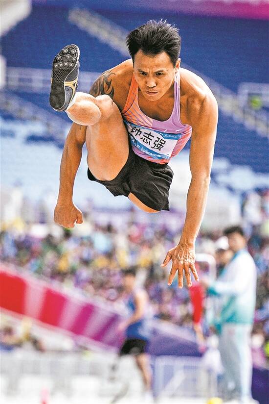 广东一团选手钟志强在男子跳远T63级比赛中 羊城晚报记者 钟振彬 摄
