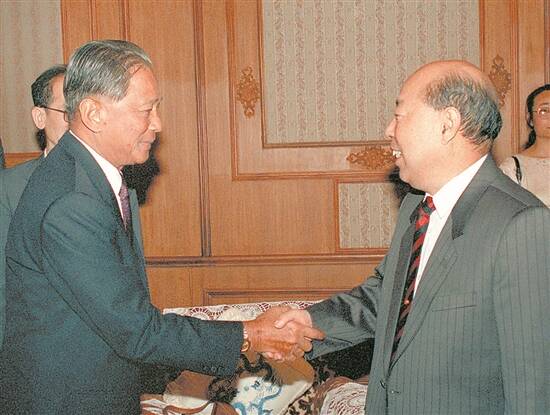 1994年5月10日,王丙乾同志在北京钓鱼台国宾馆会见由主席巴攀·杜巴德米率领的泰国上议院军委会代表团 新华社发 |