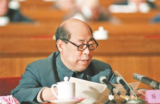 1987年3月26日,王丙乾同志在六届人大五次会议上作关于1986年国家预算执行情况和1987年国家预算草案的报告 新华社发 |