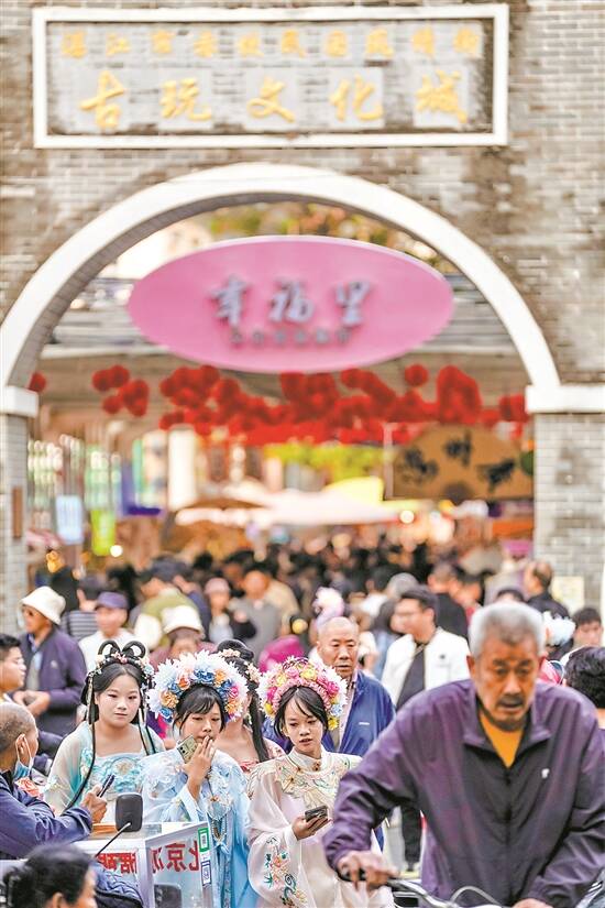 元旦假期第二天,南粤大地各景点游人如织,其中湛江赤坎老街节日氛围浓厚。游人穿梭古巷,小吃香气四溢,传统韵味与迎新欢喜交织,绘就热闹图景