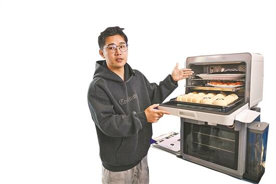 15日,“广货行天下”春季行动家电专场活动上,主播向消费者推荐蒸烤炸一体机 |