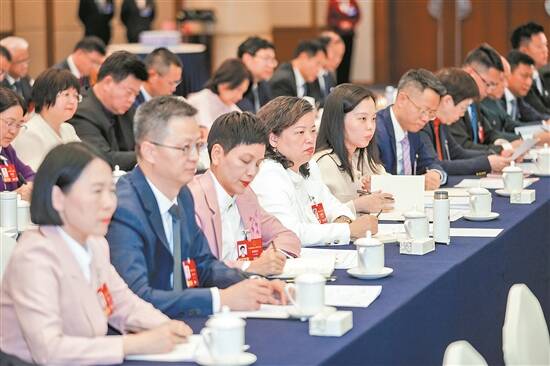 文/羊城晚报记者 柳卓楠 符畅 冷霜 图/羊城晚报记者 梁喻 3月5日下午,十四届全国人大四次会议广东省代表团举行全体会议,审议政府工作报告。现场气氛热烈,代表们围绕制造业与服务业“两业协同”、现代化产业体系、绿色发展等话题积极发言,建言献策。 中国有“两业协同”独特基础与战略底气 政府工作报告指出,坚持把发展经济的着力点放在实体经济上,因地制宜发展新质生产力,建设现代化产业体系。 全国人大代表、TCL科技集团股份有限公司董事长李东生结合企业40年突围、成长实践,围绕推动制造业与服务业协同发展进行发言。他指出,“两业协同”既是顺应全球产业价值链重构的客观趋势,也是我国经济由高速增长阶段迈向高质量发展阶段的内在要求。我国具有全球最完备的制造业体系与超大规模市场,这正是深化“两业协同”的独特基础与战略底气。 “制造业与服务业是‘树干与枝叶’的关系,根深干壮才能枝繁叶茂。”李东生建议,首先要聚焦核心应用场景,以优质服务彰显技术价值。他举例,在刚刚结束的冬奥会上,TCL作为奥林匹克全球合作伙伴,在冬奥赛场提供了600余台高端屏显设备,覆盖超过90%的赛时直转播使用场景,充分展现了中国制造的高端服务能力。此外,他建议坚持“AI向实”,推动服务业制造化。具体而言,可将人工智能深度融入研发、生产、供应链等各环节,让技术服务于制造本身。 李东生还建议,拓宽高科技、重资产、长周期的先进制造业融资渠道。以集成电路、半导体显示、新能源等为代表的先进制造业资金投入大、回报周期长,且需持续投入,亟需建立长期稳定的再融资机制,特别是权益性资本融资。 广东为全国统一大市场建设积累宝贵经验 政府工作报告指出,纵深推进全国统一大市场建设。制定全国统一大市场建设条例。 “加快建设全国统一大市场,是构建新发展格局的基础支撑和内在要求,有利于促进要素资源在更大范围内顺畅流动和高效配置,为推动科技创新和企业发展营造有力的市场环境。”全国人大代表、广东省工商联主席(总商会会长)、研祥高科技控股集团有限公司董事局主席陈志列表示,广东作为经济大省、开放大省,为全国统一大市场建设积累了宝贵实践经验,同时也需要进一步打通堵点、连接断点、破除壁垒,推动市场由“大”到“强”、由“分割”到“统一”、由“碎片化”向“一体化”转变,以更好激发民营经济活力。 他建议,以广东先行区为样板,推动全国规则统一落地。具体而言,建议国家授权广东牵头制定工业智能领域全国统一的资质认定、质量标准和招标采购规则,将“湾区认证”拓展为全国性采信标准,从制度上破除地方保护和市场分割。加快出台《全国统一大市场建设条例》,全面清理不合理的地方准入限制,让优质科技企业在全国范围内“一处认证、全国通用”。 环境保护与经济发展兼顾创“广东奇迹” 政府工作报告指出,加快推动全面绿色转型。以碳达峰碳中和为牵引,协同推进降碳、减污、扩绿、增长,增强绿色发展动能。 全国人大代表,广东省生态环境厅党组书记、厅长徐晓霞指出,高水平保护是高质量发展的前提和基础,高质量发展则是实现高水平保护的有力支撑。广东作为经济大省,创造了经济总量连续37年领跑全国,生态环境质量持续走在全国前列、连续5年国家考核优秀的“广东奇迹”,证明了生态环境保护与经济发展不是“二选一”的选择题,而是相辅相成的必答题。 “‘绿水青山’不会自动变成‘金山银山’,关键在于打通转化路径,这既需要‘守底线’的硬约束,也需要‘拓通道’的软创新。”徐晓霞指出,就广东工作而言,一方面,坚决守住发展“伦理底线”。另一方面,积极探寻生态产品价值实现机制——碳普惠助力苏区老区增收超6000万元,绿色金融EOD项目授信达35.2亿元,绿色信贷余额突破4.2万亿元。这些数字背后,是让老百姓实实在在感受到“空气能卖钱、好生态能增收”。 徐晓霞建议,广东可以充分发挥毗邻港澳国际化优势,在绿色标准、低碳技术等领域先行先试,做好六五环境日国家主场活动、APEC峰会环境质量保障,讲好美丽中国、美丽广东故事,让世界看到中国绿色发展的生动实践。 “政府工作报告中提出要‘着力构建新型电力系统’,作为一名能源央企的一线职工,我深感使命光荣、责任重大。” 全国人大代表、广东大唐国际雷州发电有限责任公司设备部继电保护专业工程师任佳炯指出,广东作为海洋大省,海上风电可开发容量超过1亿千瓦,这是绿色能源转型的主战场,也是“十五五”时期必须抢抓的重大战略机遇。她建议,立足粤西湛江北部湾中心城市定位,加快推进北部湾海上风电集群化开发与就地消纳,助力湛江国家级零碳园区试点建设,打造“绿电生产—就地消纳—产业融合”的国家级绿色产业集聚区。 让“技高者多得、创新者多得”成为共识 政府工作报告指出,提升职业学校办学能力,建设特色鲜明高职院校。 全国人大代表、东莞职业技术学院经济与管理学院院长周虹表示,广东是制造大省,也是职教大省,在现代化产业体系建设进程中,高素质技术技能人才是核心支撑,而职业教育则是培养技能人才的主阵地。 周虹认为,高素质技术技能人才的培养,既要搭好培养平台,更要铺好成长阶梯。广东通过打破职业教育“天花板”,构建