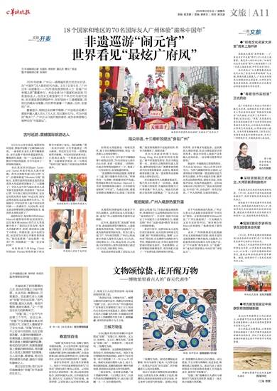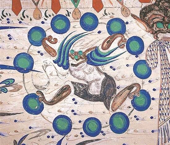 文/羊城晚报记者 李娇娇 朱绍杰 图/各博物馆资料图 羊城结束了阴雨霏霏的几天,阳光在惊蛰之日绽开笑颜。从这天起,春雷始动,万物复苏。恰如唐代诗人元稹对“惊蛰”的生动写照:“阳气初惊蛰,韶光大地周。桃花开蜀锦,鹰老化春鸠。”又一个饱含生命力的新春来了。 “惊蛰”是二十四节气中的第三个节气。自古以来,“惊蛰”不仅承载着农耕文明的烟火气,还被文人墨客赋予了文化内涵。“惊蛰”的生机,不止在诗行间流转,也在文物里苏醒。从雷神的隆隆鼓声,到青铜器上流转的云雷纹;从青花瓷盘上蝴蝶的翩然起舞、桃花的灼灼其华,到莫高窟壁画上黄鹂的婉转啼鸣,再到蒙古人金冠上振翅欲飞的雄鹰,古人观天象、察物候,将对自然的敬畏与热爱,凝结于诗画和器物之上。 透过这些文物,我们似乎仍能触摸到“惊蛰”时节澎湃的生命力。 春雷惊百虫 “惊蛰”意为春雷乍动,惊醒了蛰伏冬眠的动物。古人崇拜雷神,视其为促使万物复苏、主宰万物生长的神。正如《论衡》所载“雷神击鼓惊醒万物”,在莫高窟第285窟的《雷神壁画》中,雷神手脚并用,正奋力击打环绕其周的十二面鼓。 春雷化作纹样,还出现在青铜器上。现存于中国国家博物馆的商代“后母戊”青铜方鼎上便有云雷纹。云雷纹是中国古老纹饰的一种,将云纹和雷纹结合,圆形回旋为云纹,方形回旋为雷纹,契合古人“天圆地方”的宇宙观。商周时期,云雷纹就已运用到青铜礼器上,体现了古人对自然的崇拜,有风调雨顺的祈愿之意。 “春雷惊百虫,万物始生长”。蝴蝶以蛹的形态蛰伏过冬,唤醒它们的便是“惊蛰”之雷。2013年从广州市荔湾区广东粤剧艺术博物馆工地上出土的清代豆青花卉纹青花瓷盘上,描绘了蝴蝶在花卉之间翩飞的身影;在南越国宫署遗址出土的蝴蝶牡丹纹方砖上,蝴蝶翩翩,亦将生机定格于方寸之间。 三候万物生 出自《逸周书》的《时训解》中这样描述“惊蛰”:“惊蛰之日,桃始华。又五日,仓庚鸣。又五日,鹰化为鸠。”这便是“惊蛰三候”:一候桃始华,二候仓庚鸣,三候鹰化为鸠。 一候桃始华。这是指桃花接收到了春的信号,纷纷绽放于枝头。现存于故宫博物院的《桃花图轴》,由时年79岁的邹一桂于清乾隆三十一年(1766年)所画。桃树从画面右侧斜入向上,枝干上桃花簇拥绽放,花瓣的那抹粉、嫩叶的那抹绿,鲜活地诉说着春天的生机盎然。 二候仓庚鸣。仓庚便是黄鹂。“两个黄鹂鸣翠柳,一行白鹭上青天”,在清代华喦的《黄鹂垂柳图》中,画出两只黄鹂一上一下,似在嬉戏对鸣。 三候鹰化为鸠。此时老鹰躲起来繁殖,布谷鸟却多了起来,大自然完成了一次悄无声息的“岗位交接”,其中蕴藏着古人的诗意观察。 现存于内蒙古博物院的战国鹰顶金冠,以黄金为主体,雄鹰立于冠顶,雄鹰的头颈部由两块绿松石拼合而成,并以金丝与尾部巧妙连接。这精心的设计,使雄鹰的头颈可以左右摆动。可以想见,当主人策马奔腾时,风过金冠,雄鹰也随之振翅欲飞。此冠代表了战国时期北方草原民族贵金属工艺的最高水平,被誉为“草原瑰宝”。 “惊蛰三候”蕴藏着古人感知与观察时节气候变化的智慧,酝酿了一场天地之间盛大的苏醒。