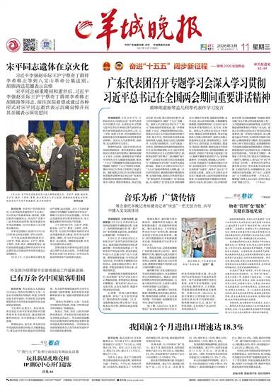 中共广东省委主管、主办 羊城晚报社出版 1957年10月1日创刊 2026年3月11日 丙午年正月廿三 星期三 责编/冷爽 美编/郭子君